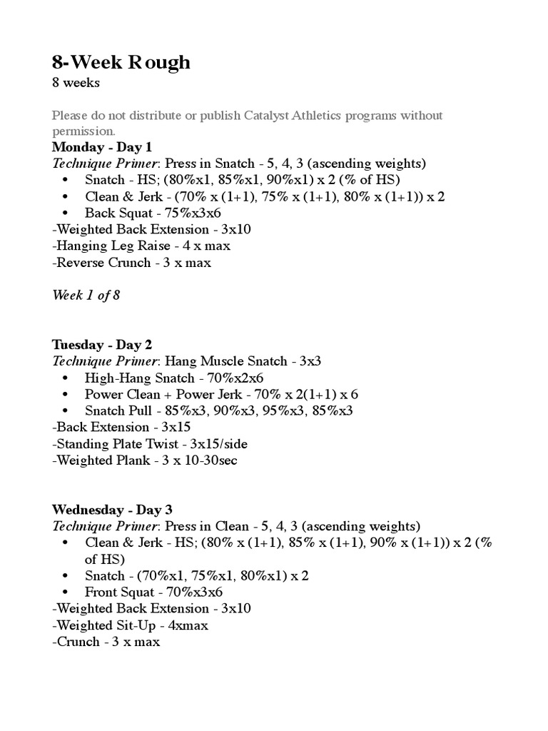 Catalyst Athletics 8 Week Rough Program Pdf Athletic Sports Sports